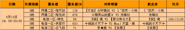 5月12日比赛结果