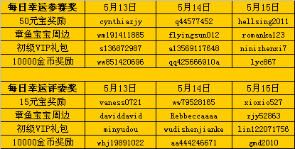 5月13-15日幸运玩家名单