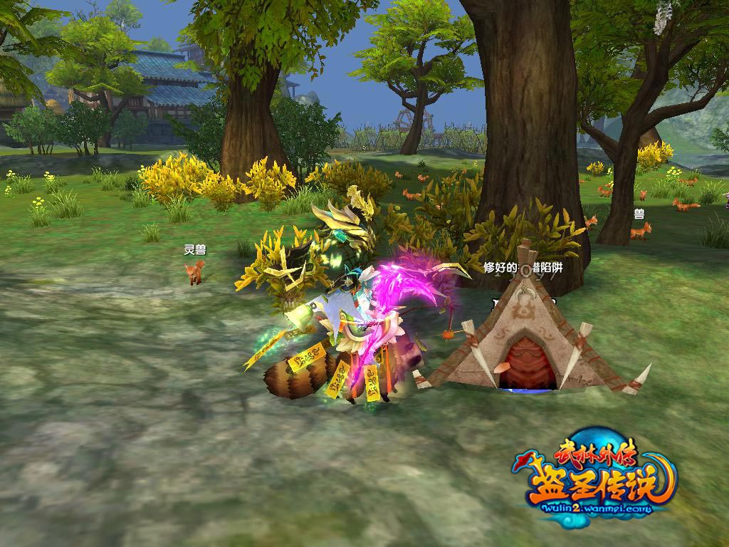一群灵兽闯进了五灵圣域,搅扰得大家不得安宁,猎户胥游希望你去消灭它们。对付这种怪物,千万不能穷追猛打,先拿上猎户胥游给你的木工锤去修理陷阱吧,瞄准陷阱的方向,把灵兽驱赶到那里,它就动弹不得,只能乖乖受死了!记住,木工锤可是有限时的,要是花了很长时间都没完成,那就只好央求别人给你修陷阱了。