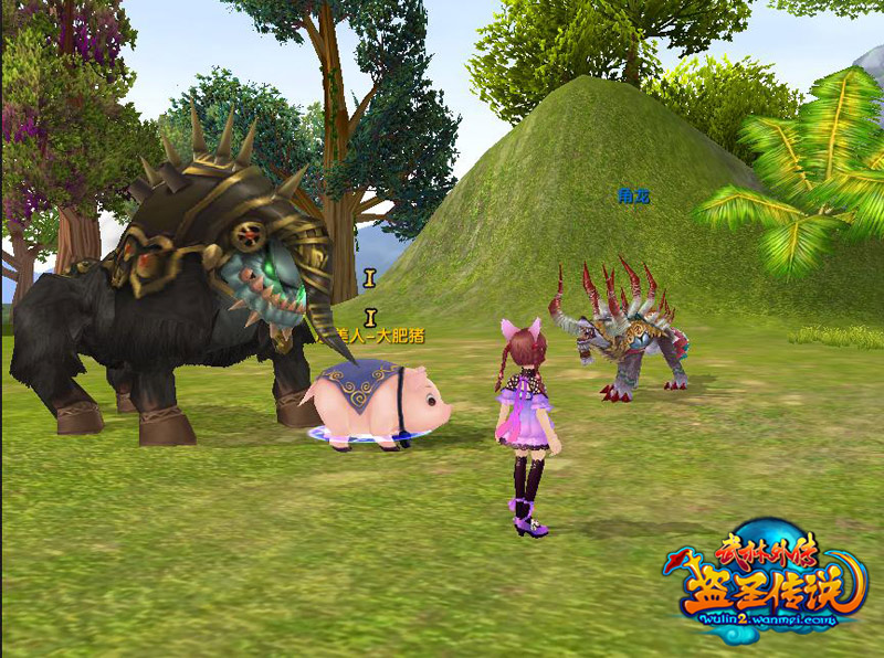 恐龙已经灭绝了吗?谁说的!武林游乐场,让大侠体验喂养恐龙的乐趣!大肥猪可不傻,不会等着被吃掉,它可是会逃跑的哦!