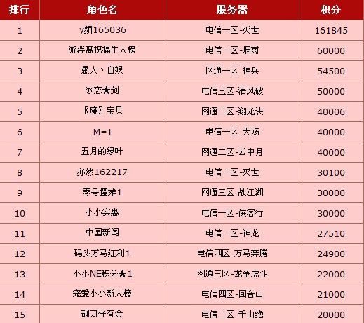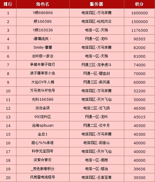 新年给力双倍积分大促销火爆进行中!迎新牛人榜和迎新新人榜第二期榜单今日产生啦!向上榜的给力玩家们送上最热烈的祝贺!详情榜单如下:
