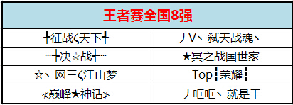 (图01:跨服王者赛全国8强)